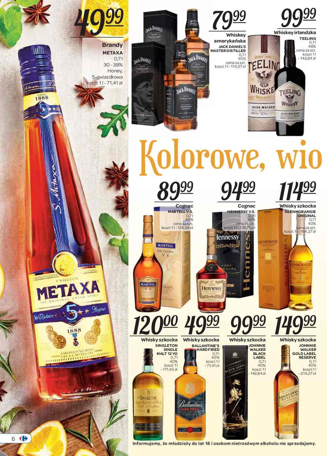 Jack Daniel's whisky, Metaxa brandy, Ballantine's whisky, Johnnie Walker whisky