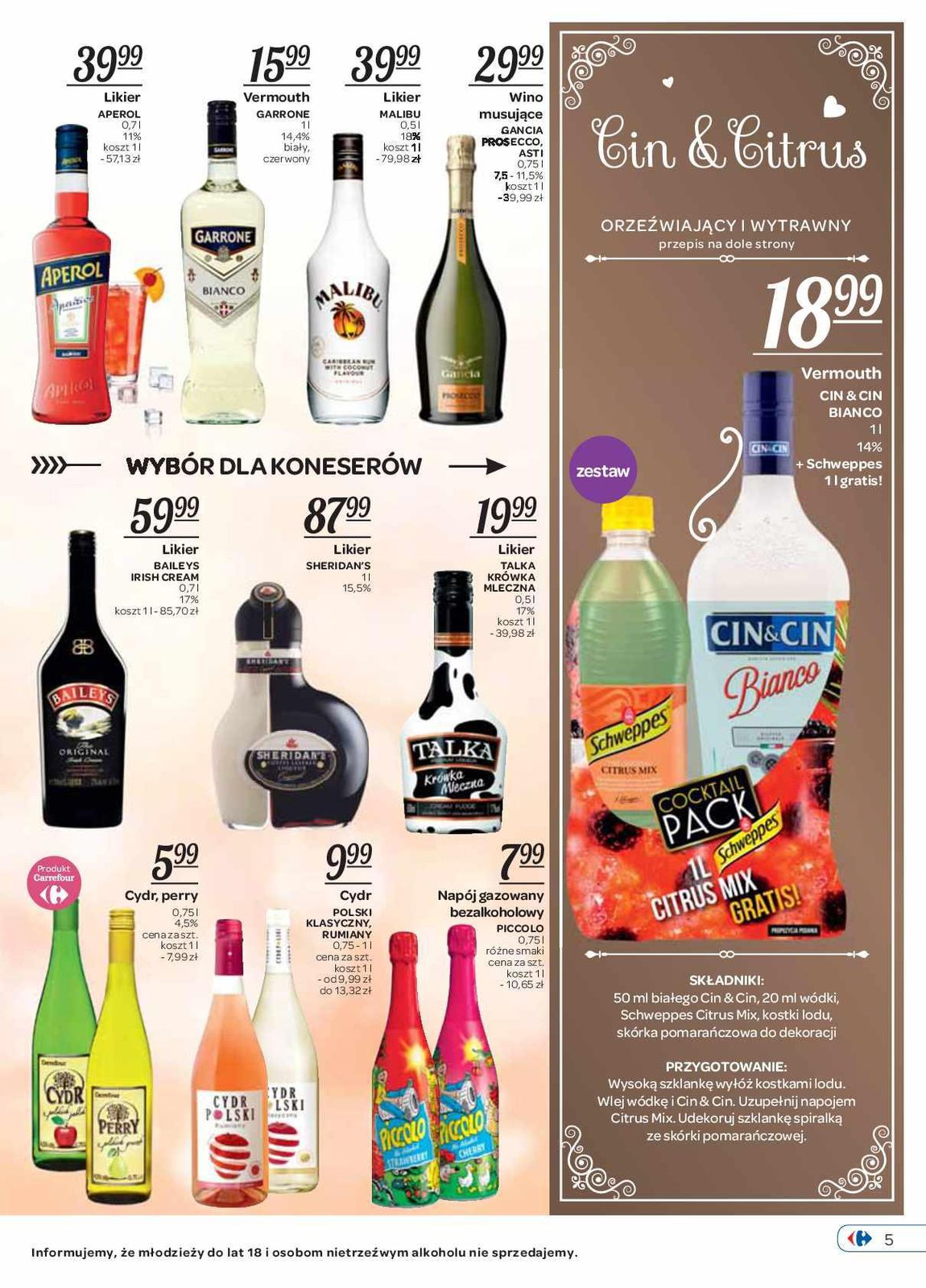 Malibu, Baileys likier, Sheridan's likier, Cin & Cin vermouth